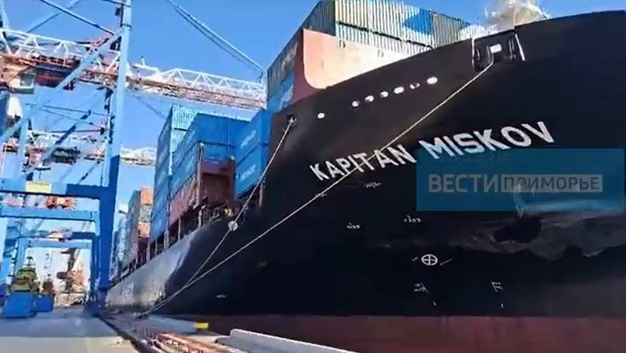 Новый контейнеровоз «Капитан Миськов» встретили во Владивостоке