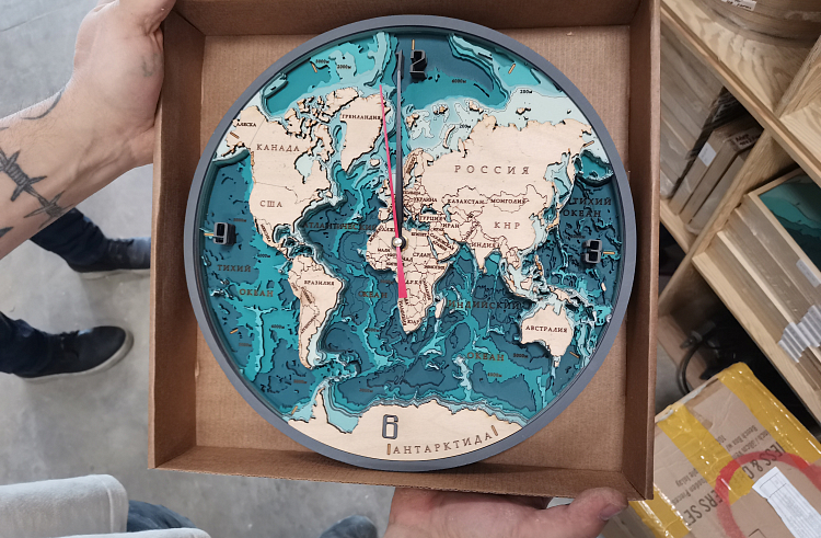 Так, в 2022 году благодаря поддержке центра компания отправилась в Москву на экспортную выставку Christmas Box.Podarki. Предприниматели из-за рубежа приобрели несколько карт в виде часов. И с недавнего времени объемные многослойные карты с визуальным эффектом морских глубин и рельефа земли продаются в сувенирных магазинах в 13 регионах России, Гонконге и Дубае.