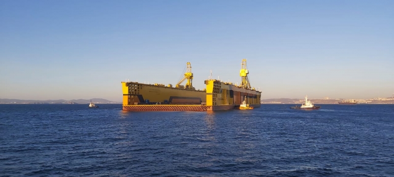 Док транспортируется в ООО «Судостроительный комплекс «Звезда» из порта Циндао (КНР). Конечный пункт ПД-100 — якорная стоянка в акватории бухты Чажма, бухты Стрелок, бухты Петра Великого.