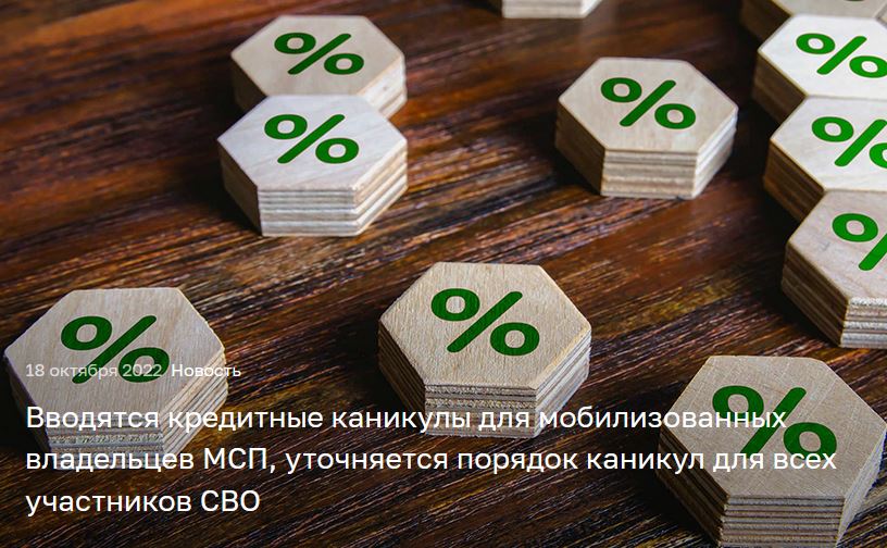 Вводятся кредитные каникулы для мобилизованных владельцев МСП, уточняется порядок каникул для всех участников СВО