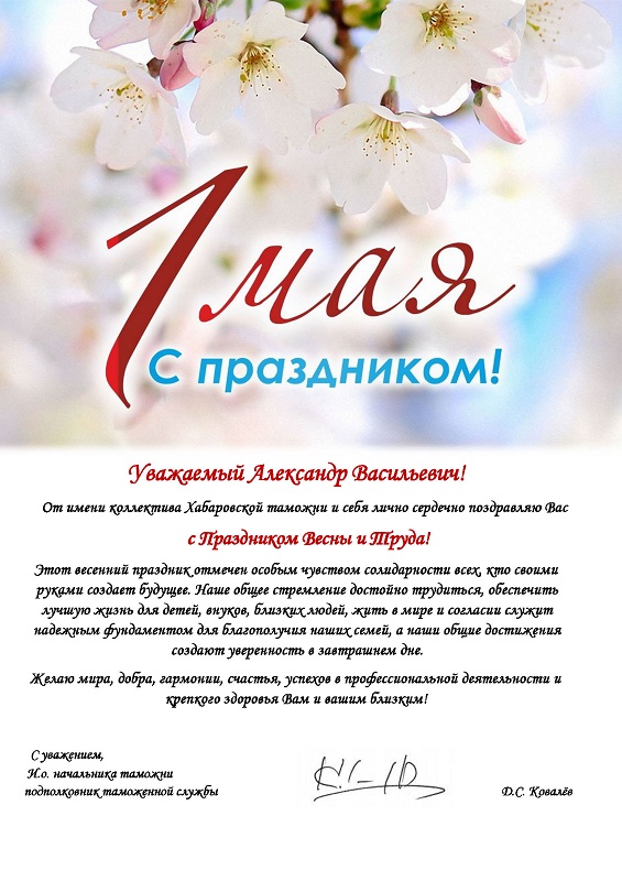Поздравляем всех, кто трудится на благо Владивостокского филиала Российской таможенной академии и обеспечивает его слаженную работу и успех, – профессорско-преподавательский состав, работников и студентов!