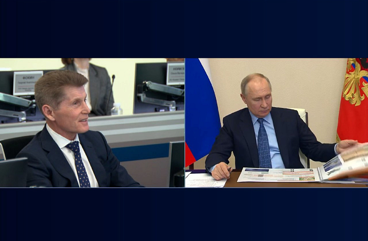 Губернатор Приморья Олег Кожемяко представил Президенту России Владимиру Путину проект круглогодичного морского курорта в Хасанском округе на совещании по вопросам создания федеральных круглогодичных проектов.