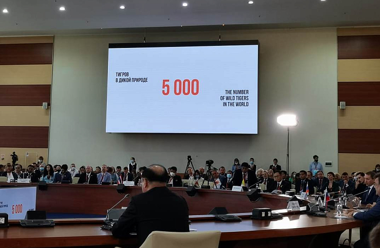 По словам Владимира Путина, с которыми он обратился к участникам пленарной сессии форума по видео, в настоящее время на территории России обитает не менее 750 амурских тигров, в том числе около сотни тигрят. За 12 лет российская популяция амурского тигра возросла на 360 особей, а общемировая популяция всех подвидов тигра увеличилась на 40%. Площадь ареала обитания амурского тигра в РФ составляет 186 тысяч квадратных километров. Около 600 особей живет в Приморском крае, отмечает пресс-служба краевого правительства.