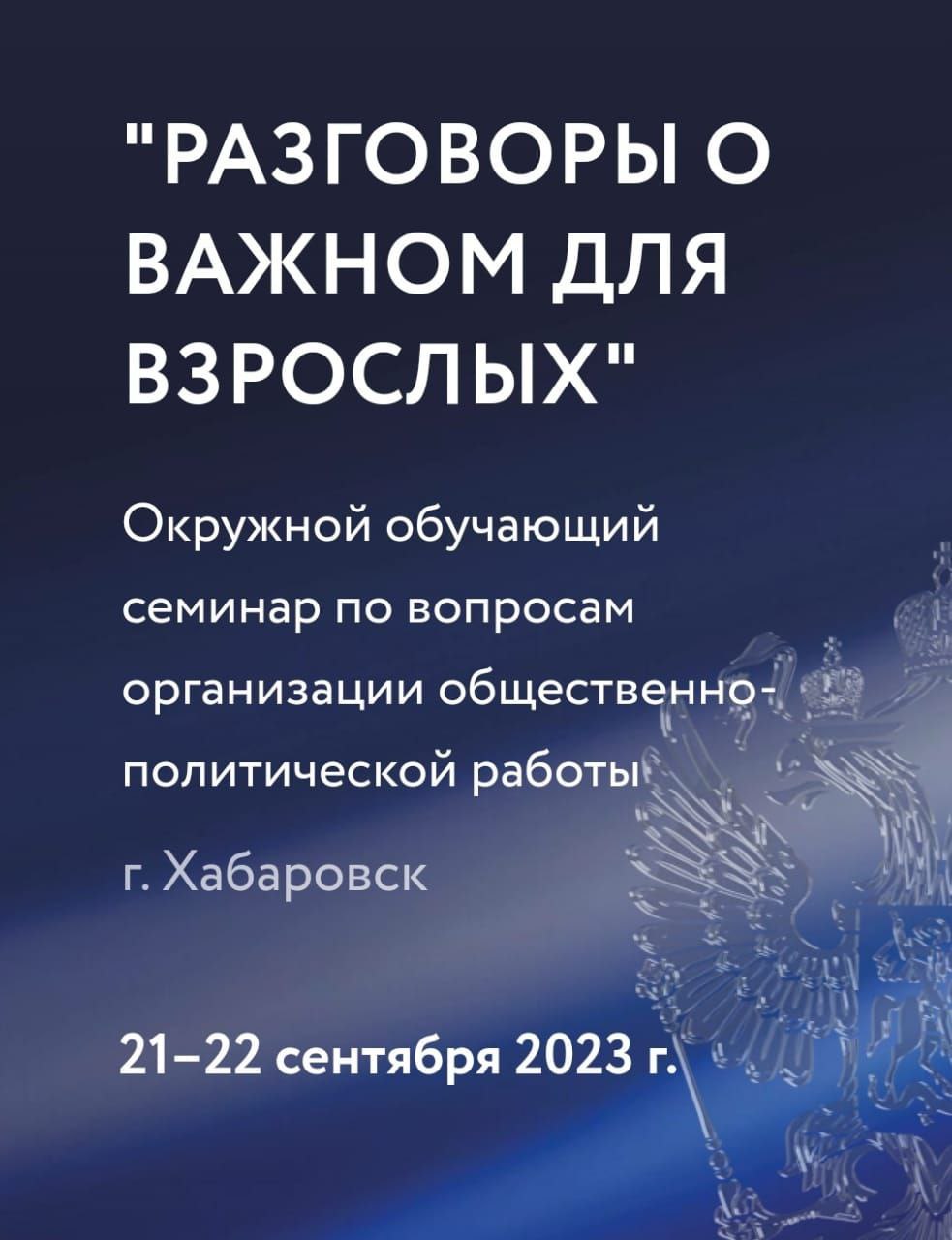 Руководители территориальных органов Минюста России, действующих на территории Дальневосточного федерального округа, 21-22 сентября 2023 г. приняли участие в окружном обучающем семинаре по вопросам организации общественно-политической работы «Разговоры о важном для взрослых» в г. Хабаровске.