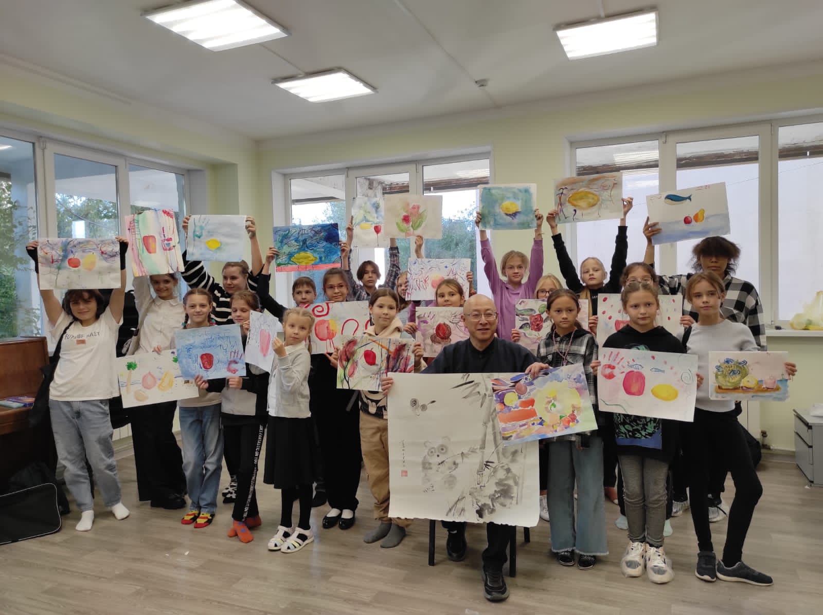 Юные художники от 8 до 12 лет познакомились с китайским художником-педагогом Хао Шоумином из Хэбэйского педагогического университета, г.Шицщячжуаня, провинции Хэбэй.