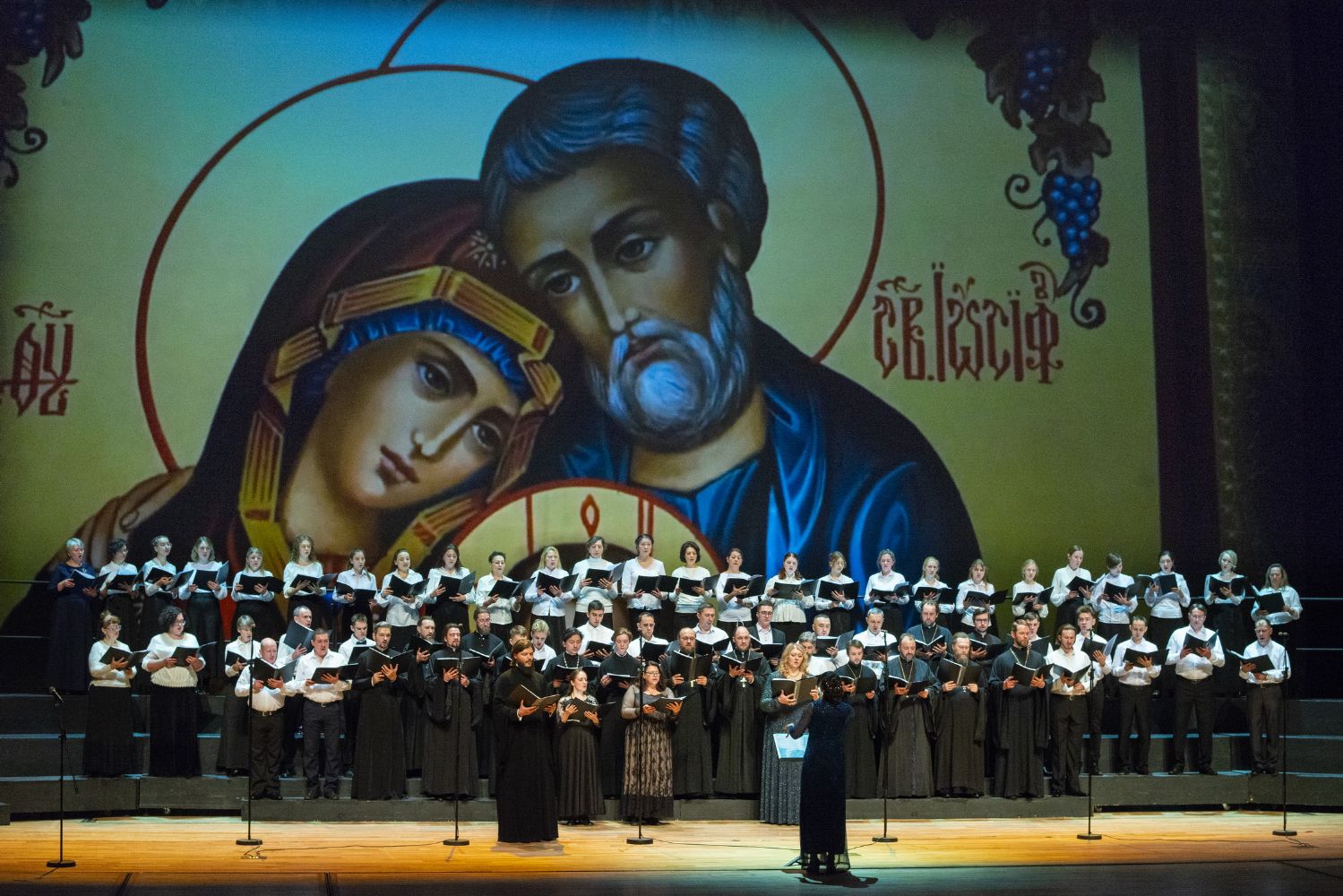 Владивосток. 11 января 2022 года на Приморской сцене Мариинского театра состоялся Большой Рождественский концерт сводного хора Владивостокской епархии, солистов, женского хора и струнного оркестра театра.