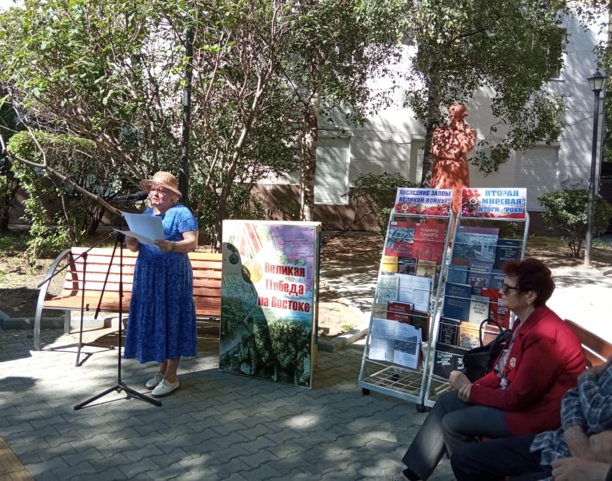 3 сентября 2022 года на прилегающей территории Центральной городской библиотеки в сквере рядом с памятником Н.А. Некрасова состоялись громкие чтения «Дальневосточная победа» и обзор книжной выставки «Последние залпы Великой Победы».