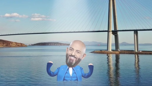 «Мост на Русский. 3 сентября. Михаил Шуфутинский. Ни слова больше!» — говорится в описании ролика, в котором певец исполняет «Третье сентября» на фоне моста на остров Русский, при этом выныривая из воды.