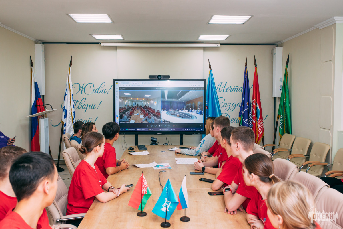 Последняя неделя первой смены во Всероссийском детском центре «Океан» началась с международной встречи. Участники профильного отряда «Движение Первых» провели онлайн-конференцию с детьми из Республики Беларусь, которые отдыхают в Национальном детском центре «Зубрёнок».