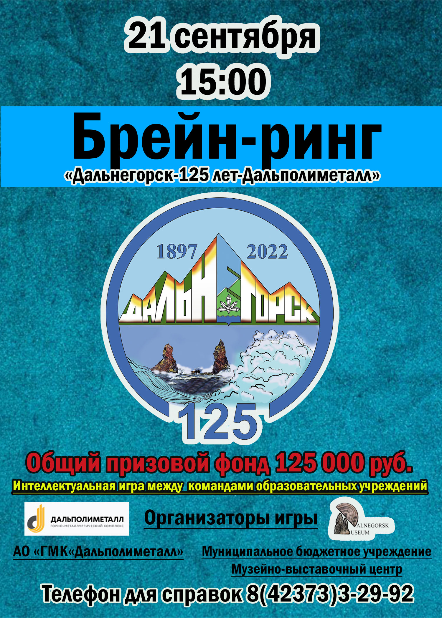 Приглашаем учащихся школ, принять участие в интеллектуальной игре “Дальнегорск-125-Дальполиметалл” (приуроченной к Дню города).
