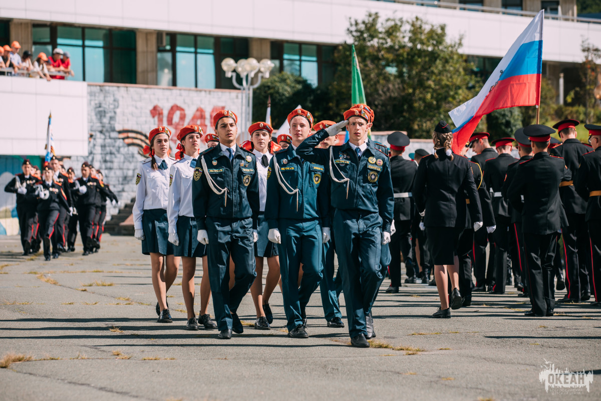 Ежегодно в августе и сентябре в детском центре проходят смены, которые объединяют сотни ребят, состоящих в военно-патриотических организациях. Одно из главных мероприятий таких образовательных программ – парад, приуроченный ко Дню воинской славы России. Утром 23 августа по океанской площади Мира строем прошли 30 парадных расчётов: участники «Слёта кадетских корпусов и классов» и слёта казачьих классов и объединений «Казачий Восток».