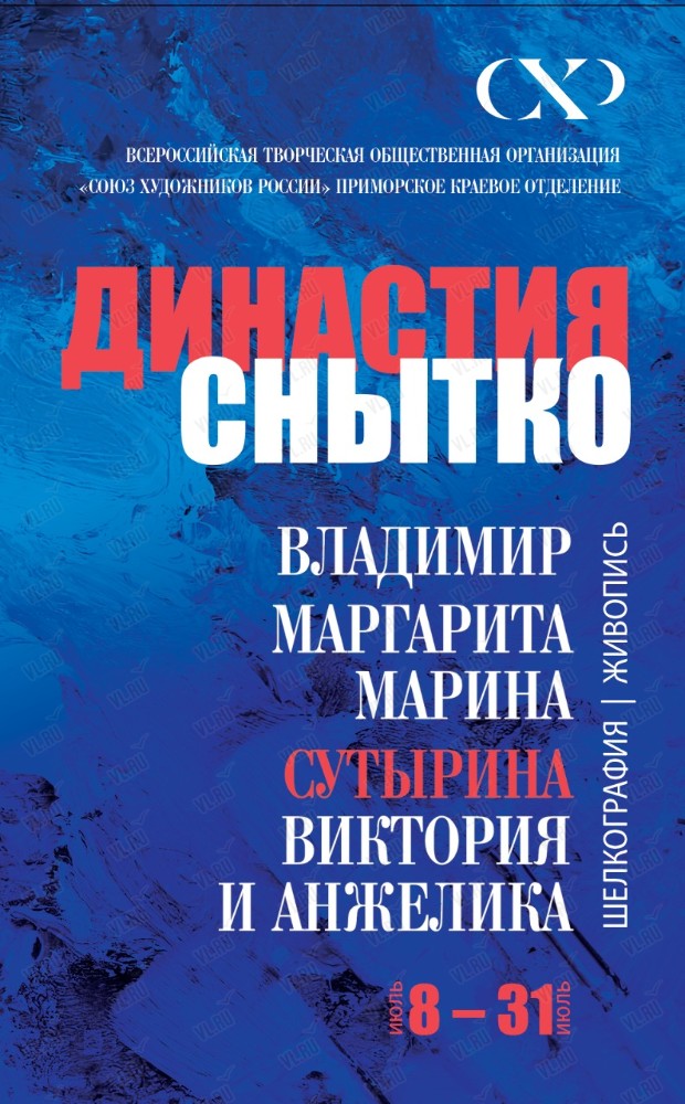 Выставка «Династия» представляет публике работы сразу нескольких поколений художников: заслуженного художника России Владимира Антоновича Снытко, его дочерей — Маргариты Снытко и Марины Снытко (Лавровой), внучки Виктории Сутыриной, а также правнучки художника — Анжелики Сутыриной, которой всего семь лет, но она проявляет большой талант к художественному творчеству.