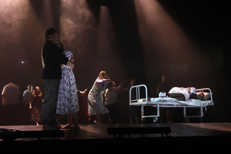 Спектакль выглядит лаконичным во всех смыслах. Декораций (Лилия Хисматуллина) на самом деле немного: ящик, имитирующий берег, шконки, больничная кровать, несколько столов и стульев, детская кроватка – они появляются, играют свою роль и пропадают. Ничего не отвлекает от драматургии.