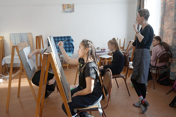 Большой плюс, что помимо внутренних интерьеров преобразится прилегающая территория. Ведь юные художники со своими наставниками в теплые дни нередко проводят занятия на свежем воздухе — выходят на пленеры. Причем не всегда уходят далеко, а располагаются с мольбертами и красками возле здания и рисуют с натуры цветы на клумбах, улицу 50 лет ВЛКСМ.