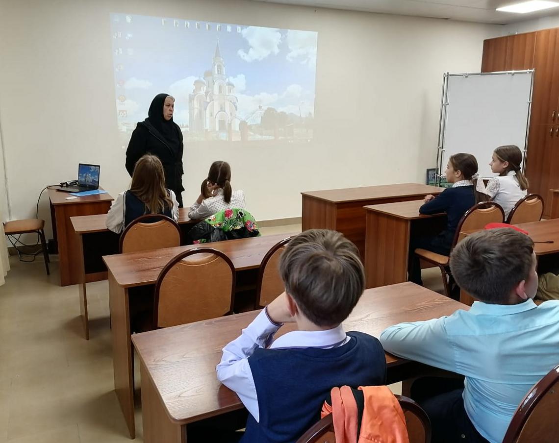 В начале беседы инокиня Мария (Воробьева) поговорила с ребятами о войне – что они об этом знают, как относятся к ней. Дети немного знают о Великой Отечественной войне, в основном эти знания находятся в рамках учебной программы. В школе обычно рассказывают только об основных событиях войны – блокаде Ленинграда, битве на Курской дуге, обороне Москвы.