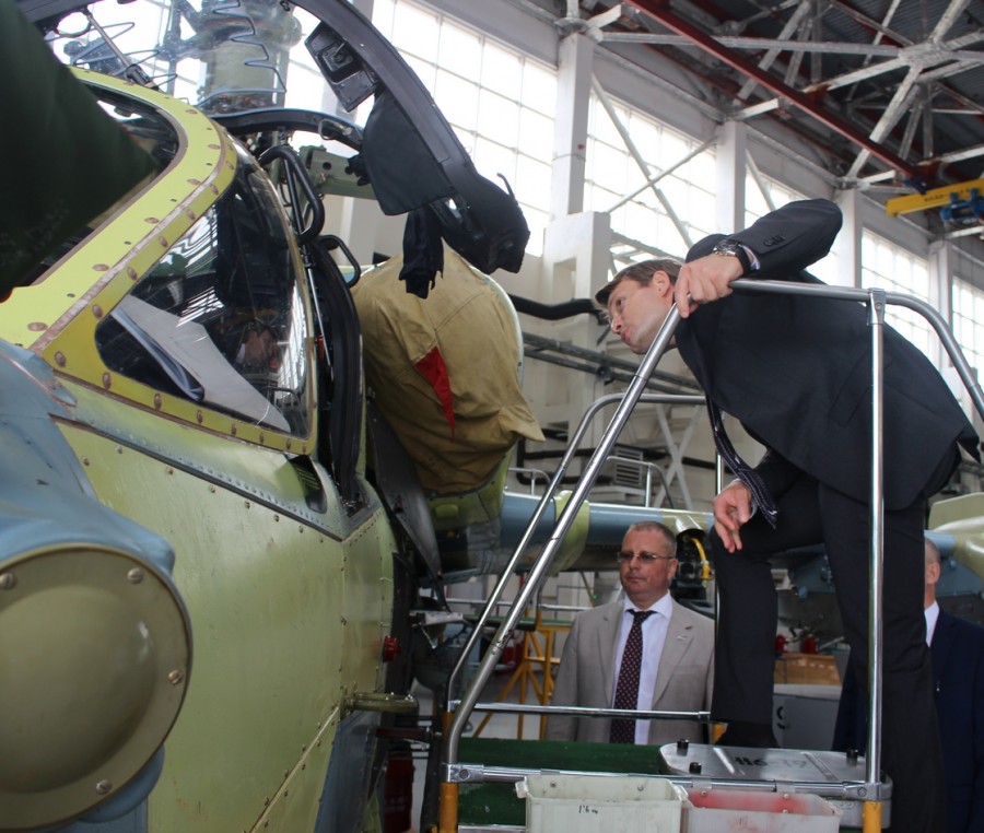 Генеральный директор ААК «Прогресс» Денис Пальцев рассказал главе вуза о деятельности завода. Представителям университета показали процесс производства вертолетов, их познакомили с производственными мощностями литейного цеха, цеха производства деталей, агрегатов и лопастей из ПКМ, цеха программной обработки деталей, агрегатно-сборочного цеха, а также цеха окончательной сборки.
