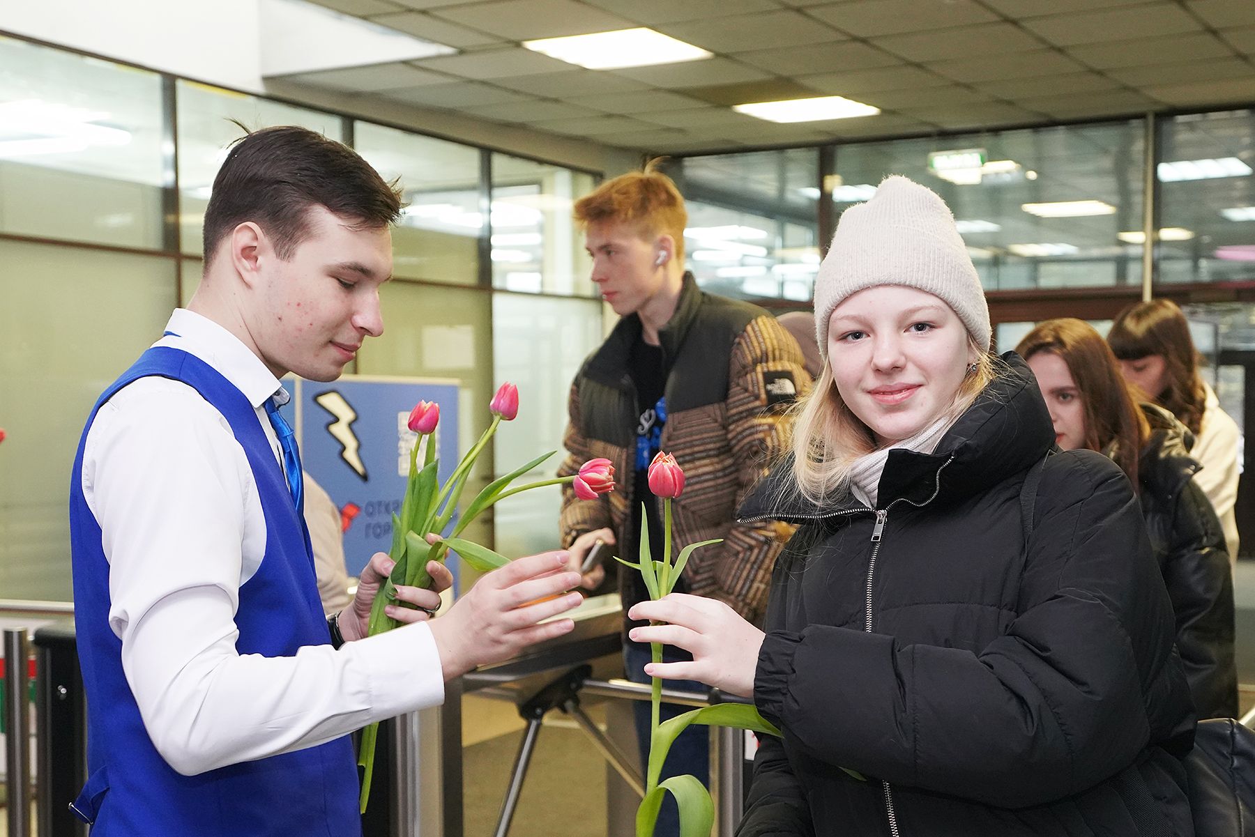 Утро 7 марта в ВВГУ получилось ярким и теплым. На всех входах в университет девушкам и женщинам дарили тюльпаны – символ весны и просыпающейся природы.