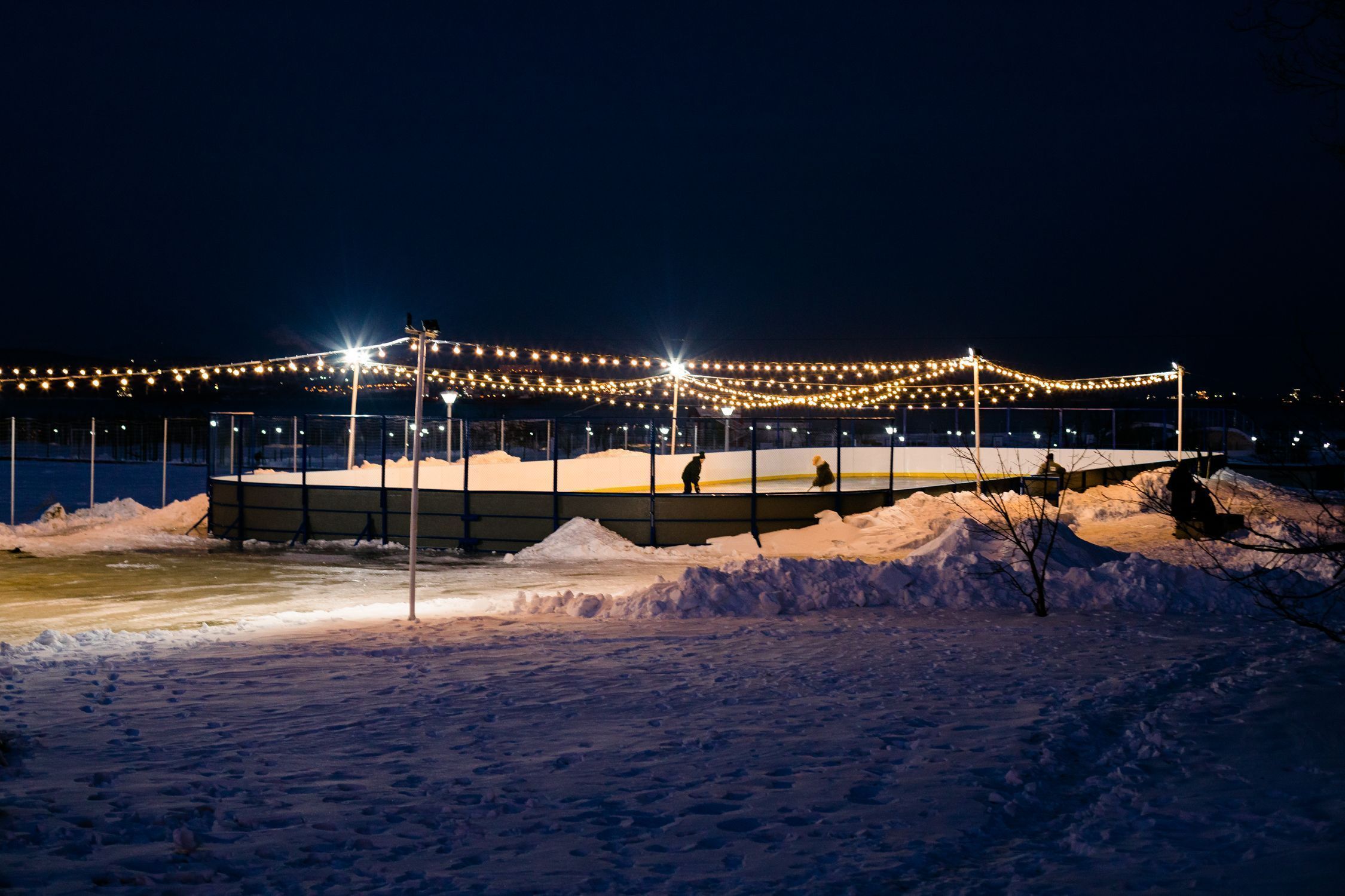 Зимой прошлого года в кампусе уже был оборудован открытый ледовый каток, который пользовался у студентов большой популярностью. С появлением новой коробки возможностей для зимнего спорта стало еще больше. Для комфортного катания в темное время суток на катке установили освещение, подключили светодиодные гирлянды.