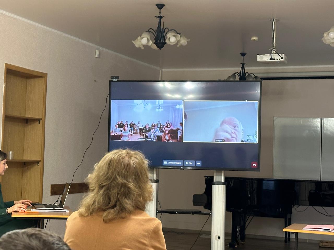 По окончании лекции в прямой эфир вышел участник трио, выпускник нашего института 1972г.,заслуженный артист РФ, художественный руководитель Коми республиканской филармонии -Волохов Валерий Андреевич.