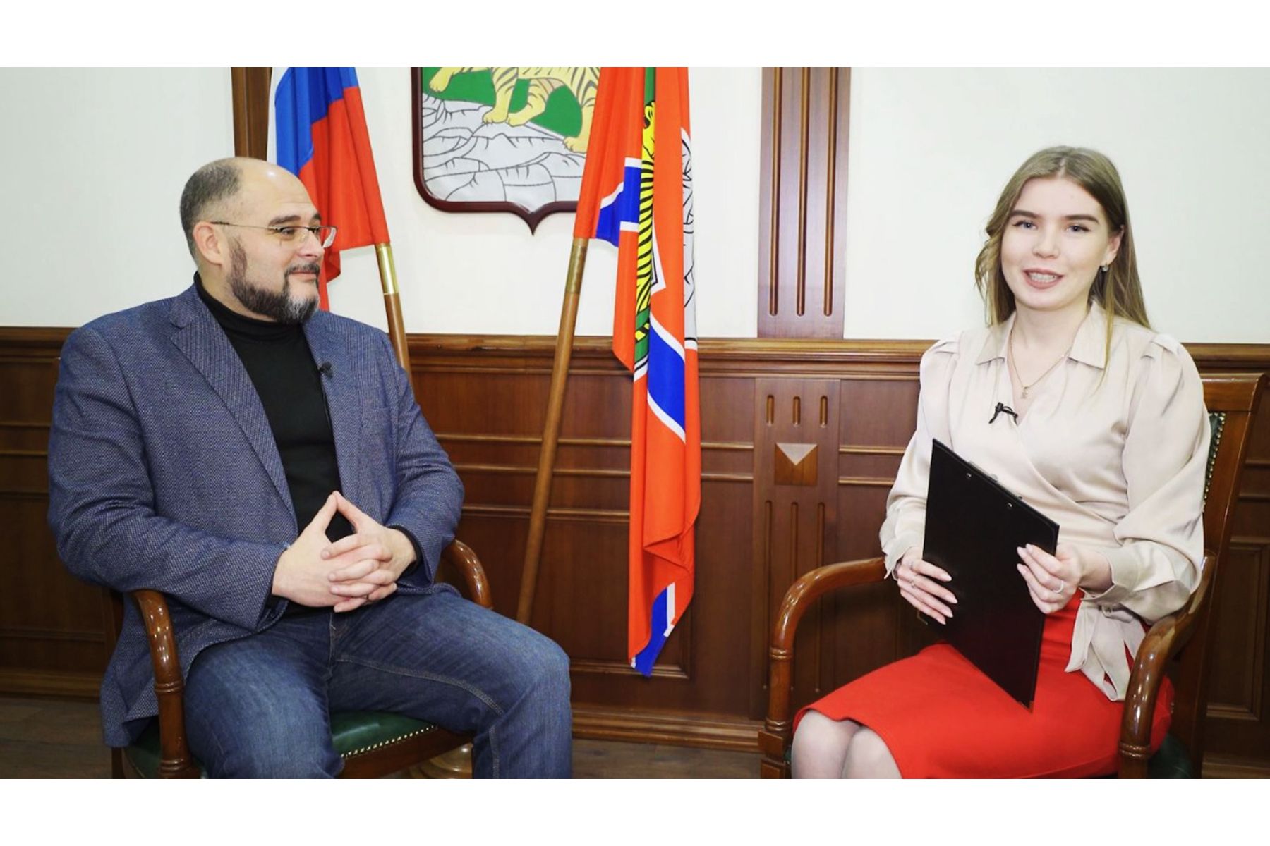 Ведущая рубрики Влада Хакимова задала мэру и другие вопросы, связанные с молодежной политикой администрации, перспективами реализации студенческих проектов Владивостока как финалиста российского конкурса на звание Молодежной столицы России.