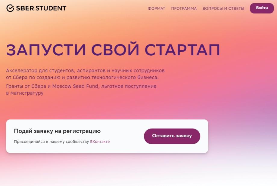 Стартовал прием заявок в акселератор SberStudent для студентов, аспирантов и научных сотрудников вузов.