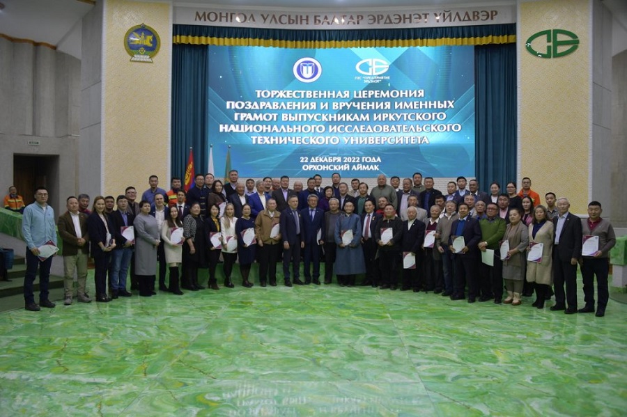 В знак признательности родной альма-матер генеральный директор ПГС “Предприятие Эрдэнэт» господин Ёндон Гэлэнгийн вручил ректору Михаилу Корнякову памятную статуэтку из сплава меди и никеля, изготовленную работниками компании, со следующей надписью: «С благодарностью от выпускников Иркутского политехнического института (ИРНИТУ) в честь 100-летия горнорудной промышленности Монголии». А также благодарственное письмо, адресованное коллективу ИРНИТУ. В тексте письма отмечается, что «выпускники ПГС «Предприятие Эрдэнэт» выражают глубокую признательность и благодарность педагогам и преподавателям Иркутского политеха. Вуз подготовил сотни специалистов для предприятия Эрдэнэт, которые внедряют новые технологии, направленные на развитие производственных мощностей ГОКа».