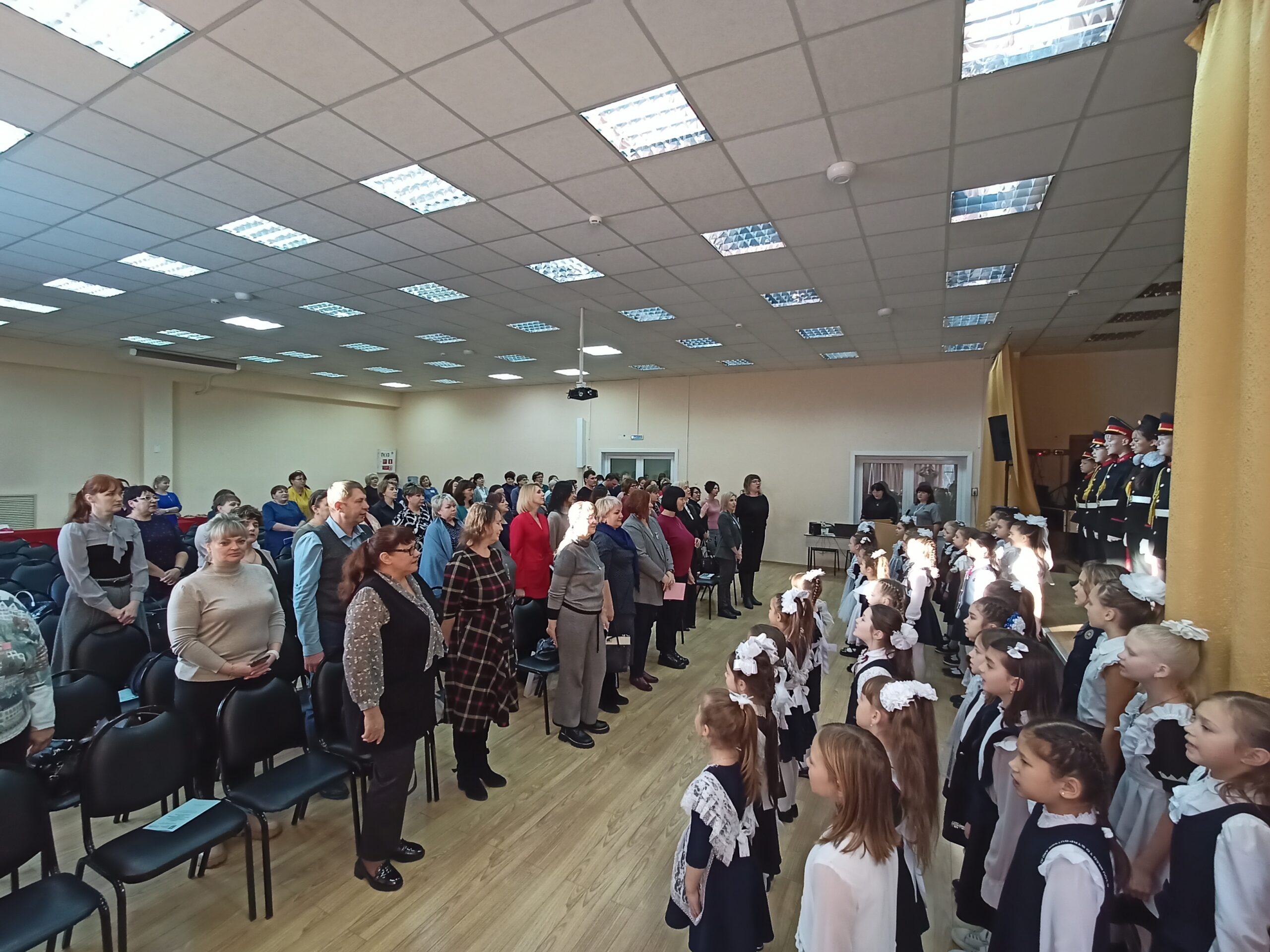 В центре проекта «Школа Минпросвещения России» — ученик. Поэтому открытие семинара доверили школьному хору, который исполнил гимн Российской Федерации.