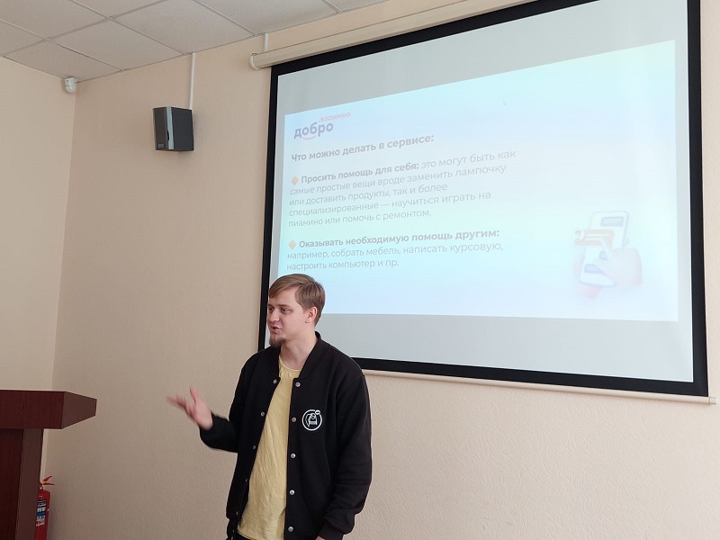 В ходе встречи Алексей Николаевич рассказал студентам 2 курса лечебного факультета о возможностях участия во Всероссийском проекте «Твой Ход» и предназначении платформы «Добро.взаимно». Студенты-медики внимательно прослушали представленную информацию и задали все интересующие вопросы. Ребята смогли зарегистрироваться на указанных платформах и оценить их в работе.
