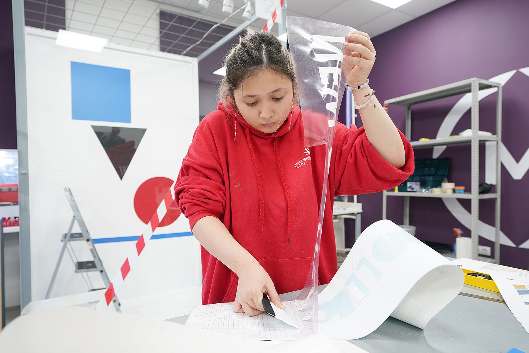 - Экзамен направлен на демонстрацию профессиональных навыков студентов: работа с краской, трафаретом, композицией. Наши ребята очень способные, талантливые. Многие из них уже участвовали в Национальном и Межвузовском чемпионатах. А документ, подтверждающий их участие в демоэкзакмене, обязательно попадет к ним в портфолио и может пригодиться в будущих учебе и работе, - рассказывает главный эксперт площадки «Визуальный мерчендайзинг», преподаватель Академического колледжа ВВГУ Оксана Петрова.