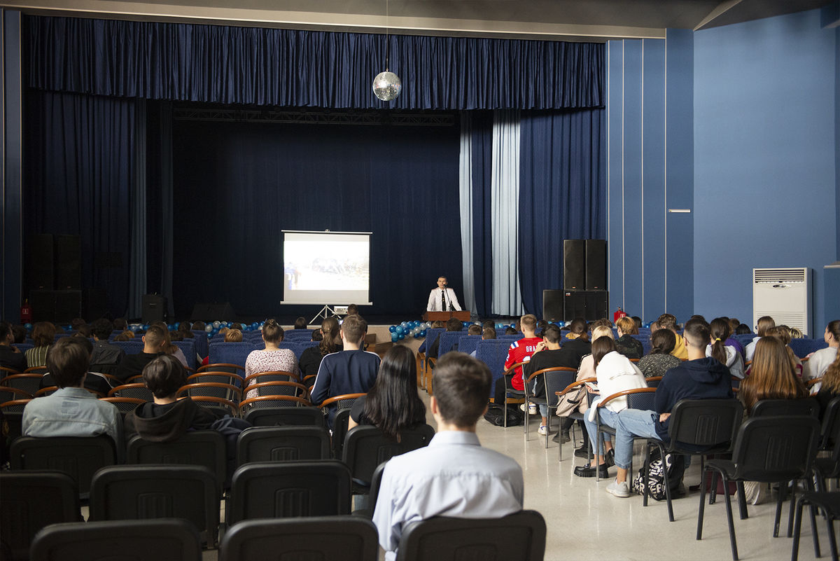 Накануне, 29 сентября, в студенческом клубе «Паллада» состоялось профилактическое мероприятие, посвящённое теме предупреждения распространения экстремизма и терроризма. С лекцией и видеопрезентацией перед молодёжью по этой теме выступил представитель Совета ветеранов УМВД России по городу Владивостоку подполковник полиции в отставке Владимир Моторин. Он уже не впервые посещает университет с просветительской миссией. В этот раз мероприятие было организовано для учеников лицея и первокурсников. В мероприятии приняли участие более 100 человек.