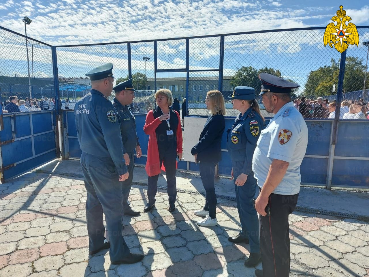 В считанные минуты все учащиеся, более 900 человек и персонал образовательного учреждения покинули здание и построились возле учебного заведения, на школьном стадионе.