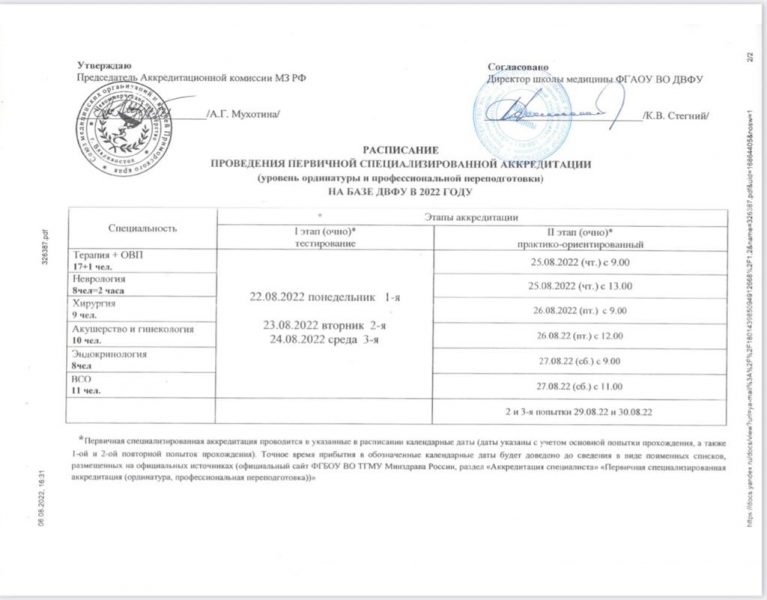 Следите за новостями на официальном сайте Аккредитационной комиссии Приморского края ( https://doctor-nmp-pk.ru/ ), ФГБОУ ВО ТГМУ Минздрава России и ФГАОУ ВО ДВФУ.