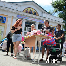 В воскресенье, 21 августа, на площади перед храмом Порт-Артурской иконы торжества Пресвятой Богородицы волонтёры проекта «Бэбишеринг» организовали очередной своп (обмен вещами). В 11 утра столы и вешала доверху наполнились предметами гардероба (и не только) для детей, беременных и кормящих мам.
