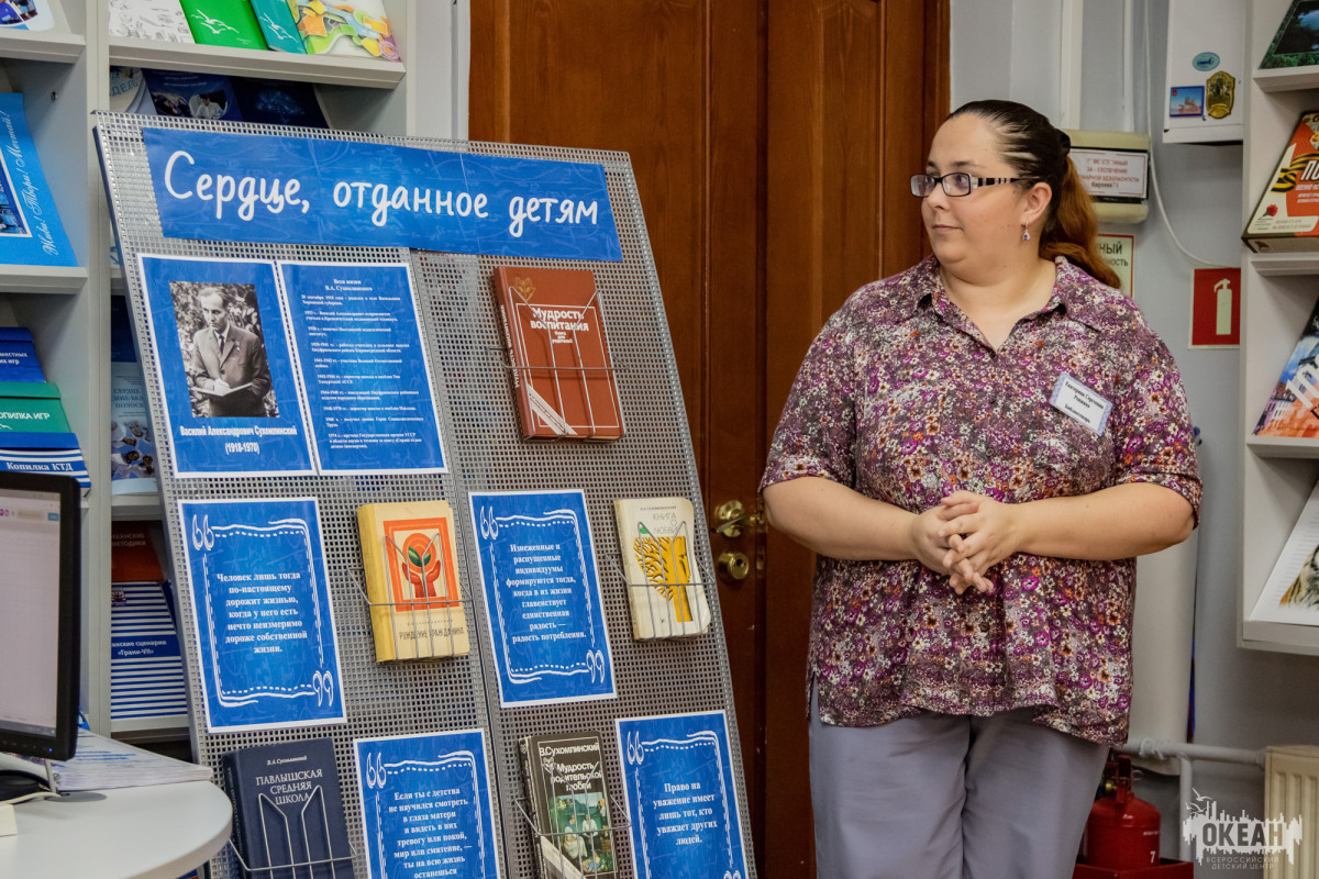 В Год педагога и наставника в преддверии 105-летия со дня рождения Василия Сухомлинского во Всероссийском детском центре «Океан» состоялось открытие выставки, посвящённой творчеству педагога-новатора. В день открытия экспозиции сотрудники библиотеки Центра провели для участников XI смены экскурсию, на которой рассказали о главных идеях педагога.