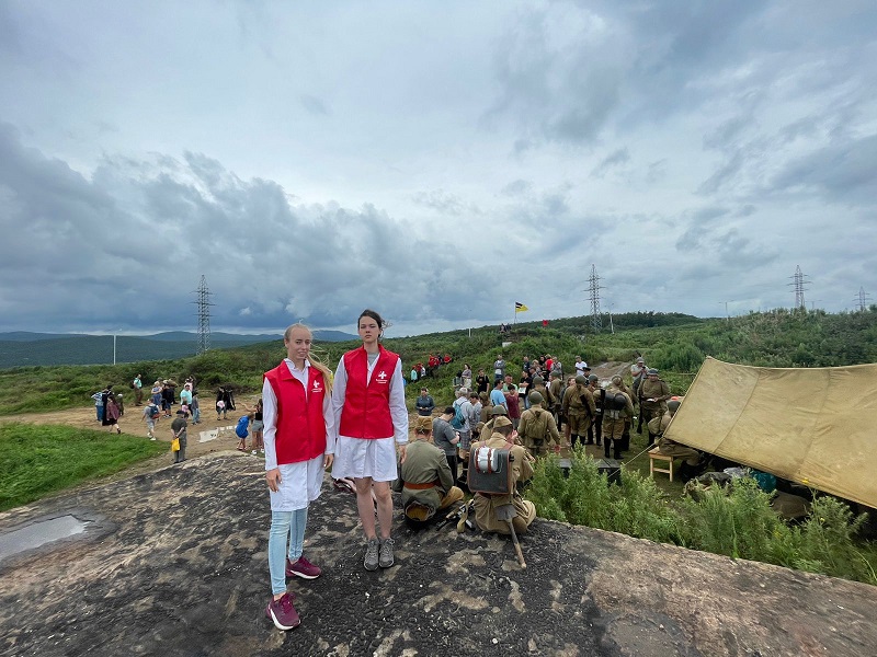 Медицинское сопровождение данного мероприятия осуществляли студенты Тихоокеанского государственного медицинского университета участники Приморского регионального отделения Всероссийского общественного движения «Волонтёры-медики». Ребята развернули медицинский пост для оказания первой помощи участникам реконструкции.