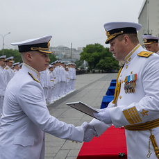 Также он поздравил всех новоиспеченных офицеров и мичманов с окончанием учебы и со вступлением в новый период их военной службы. Командующий ТОФ пожелал макаровцам успешного становления в должностях.