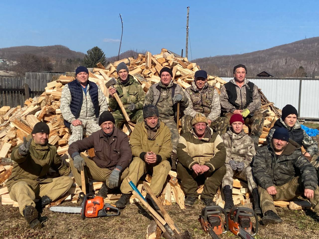 Сотрудники Кавалеровского филиала «Приморского лесничества», Кавалеровского авиаотделения и Ольгинской лесопожарной станции «Приморской авиабазы» помогли наколоть дрова семьям приморцев, мобилизованных в ряды Вооруженных Сил России.