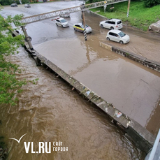 В Уссурийске сегодня разлился Сухой ручей. Ранее в интернете появились кадры с расположенного рядом железнодорожного моста – водители по пояс в воде пытались вытолкнуть из глубоких луж свои автомобили. Сейчас ситуация улучшилась, но под водой ещё остаётся одна полоса дороги.