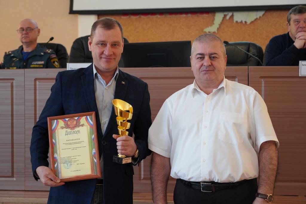 Сразу в двух номинациях отметили директора МУП «Уссурийск-Водоканал» Виталия Мутовина, как лучшее нештатное формирование по обеспечению выполнения мероприятий по гражданской обороне и лучшую дежурно-диспетчерскую службу.