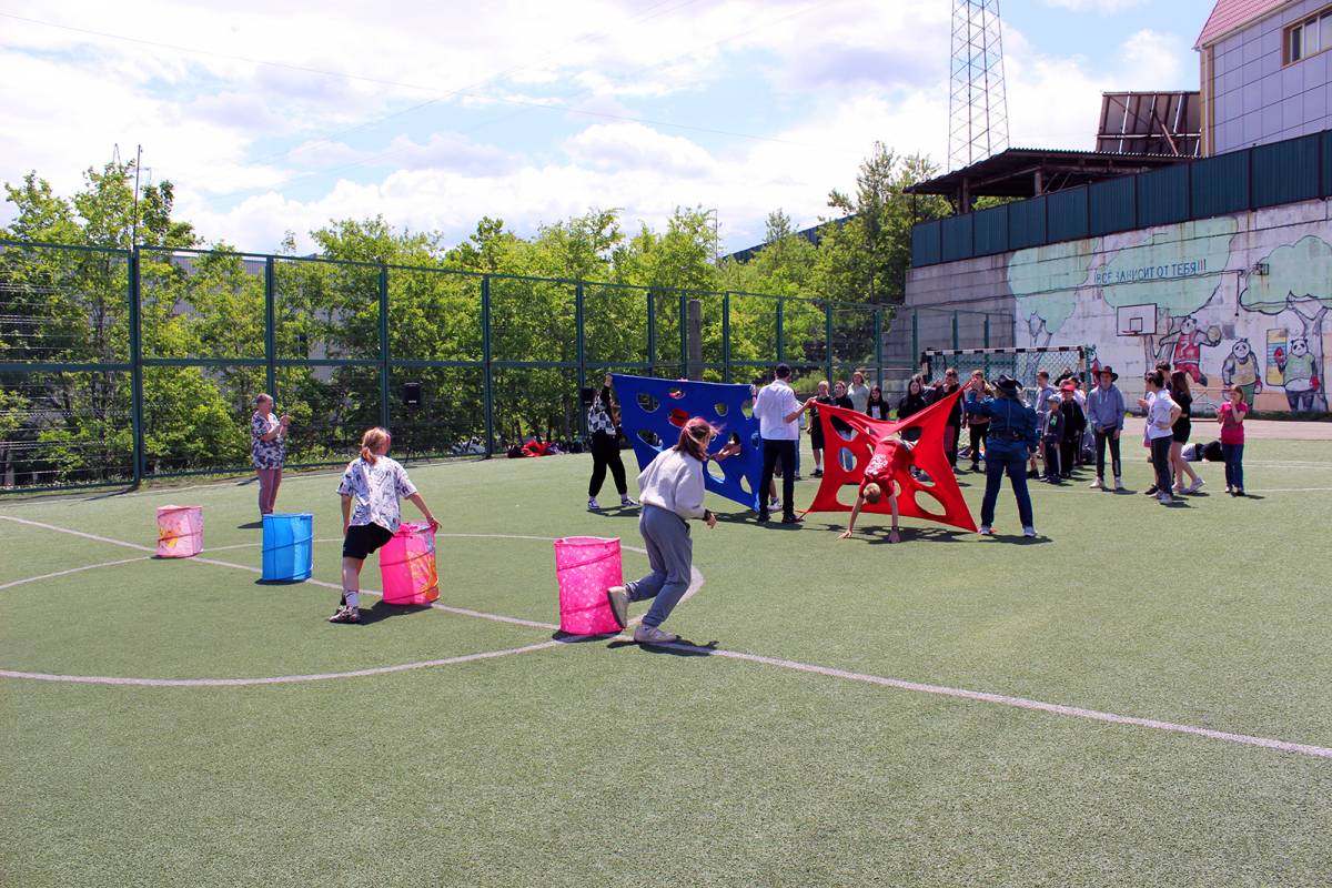 Для детей младшего и среднего школьного возраста провели развлекательную программу представители одного из известных городских праздничных агентств на стадионе социального учреждения.