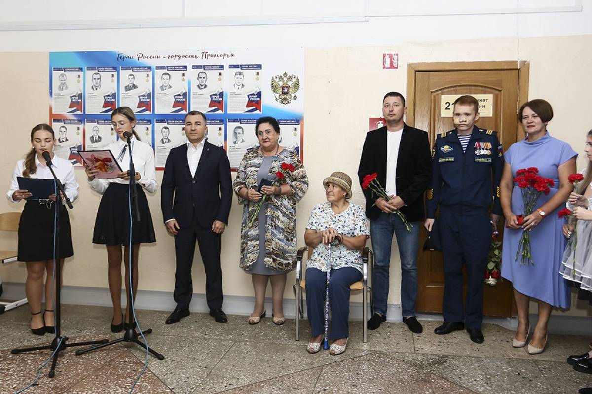 Право открыть Парту Героя было предоставлено маме Героя Евгении Андреевне и кавалеру ордена Мужества, гвардии сержанту Евгению Солдайкину .
