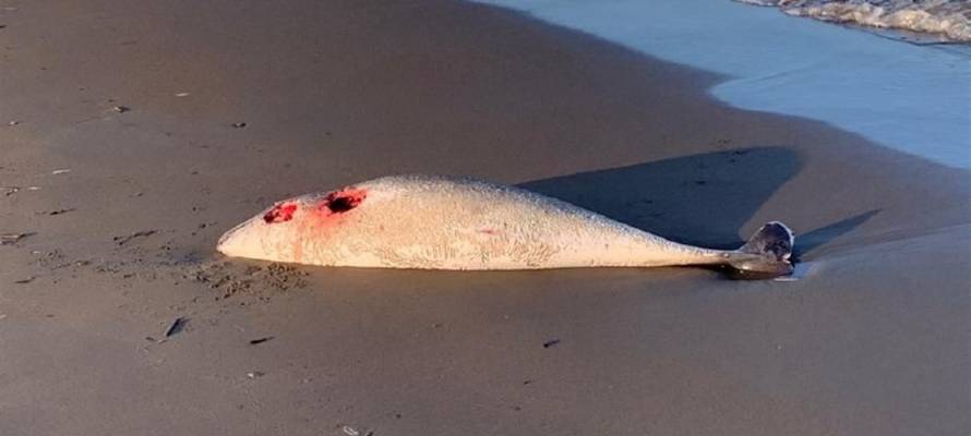 По сообщениям очевидцев, туши находятся в 100 метрах друг от друга. На теле одного из морских обитателей видны раны в районе головы и плавников.