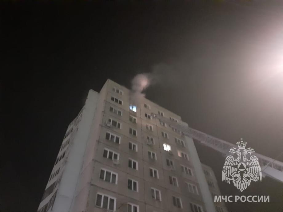 На момент прибытия пожарных из окна квартиры на 11 этаже вырывалось пламя, шел густой черный дым, в подъезде на верхних этажах наблюдалось сильное задымление.