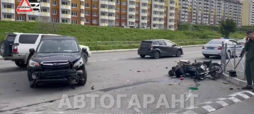 Дорожный инцидент с участием элитного авто и байка произошел на улице Горшкова во Владивостоке.