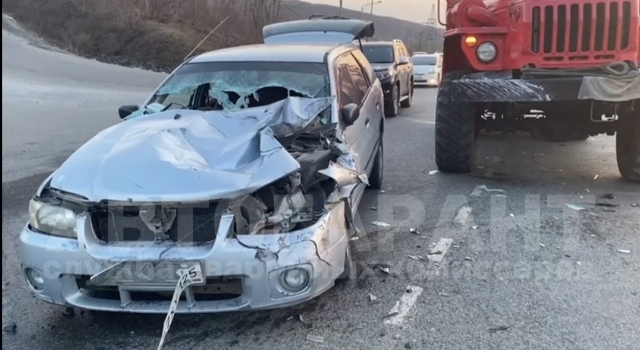 Огромный УРАЛ уничтожил «Ниссан» во Владивостоке. Есть пострадавшие