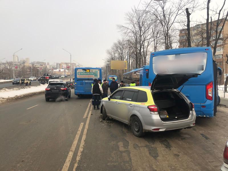 Во Владивостоке устанавливаются обстоятельства ДТП с участием автобусов и такси, произошедшего в районе остановки «Парк Победы»,