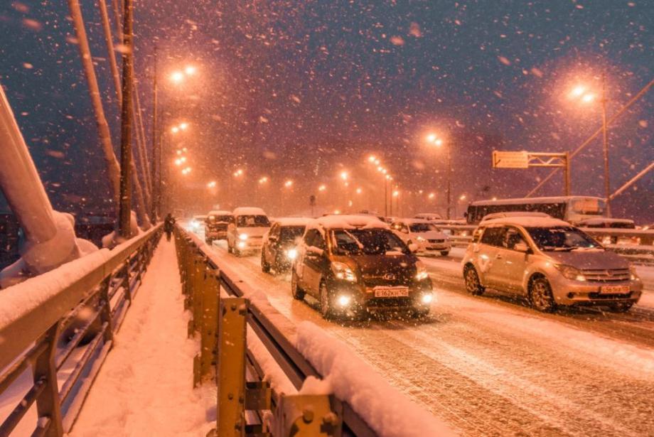 «Сносит людей». Во Владивостоке заметили ураганный ветер во время снегопада