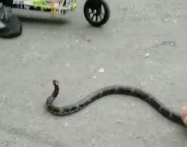 В социальных сетях появилось шокирующее видео, на котором змея с отрубленной головой ползёт по асфальту.