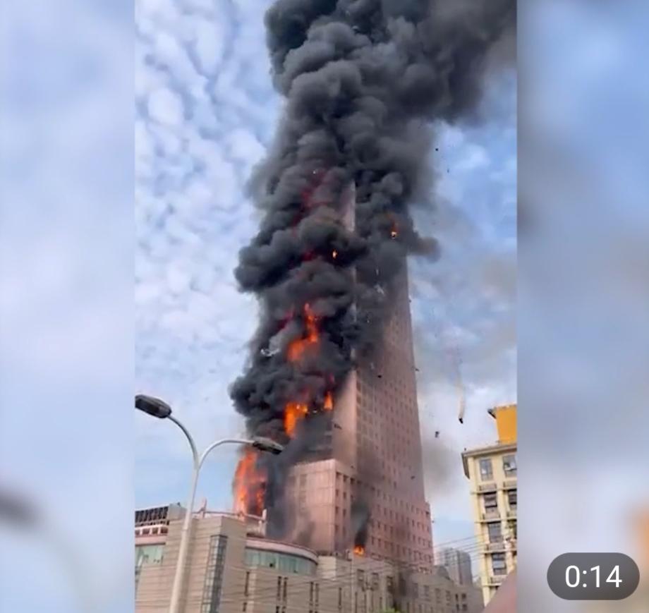 В Китае за несколько минут сгорел 200-метровый небоскреб