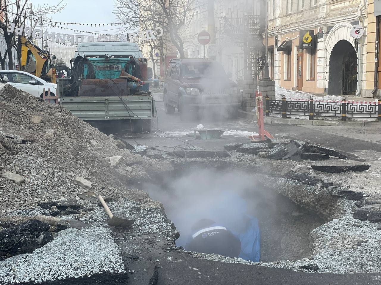 ДГК завершает ликвидацию последствий аварии на теплосетях в районе Семеновской и Корабельной Набережной, которая случилась сегодня утром.
